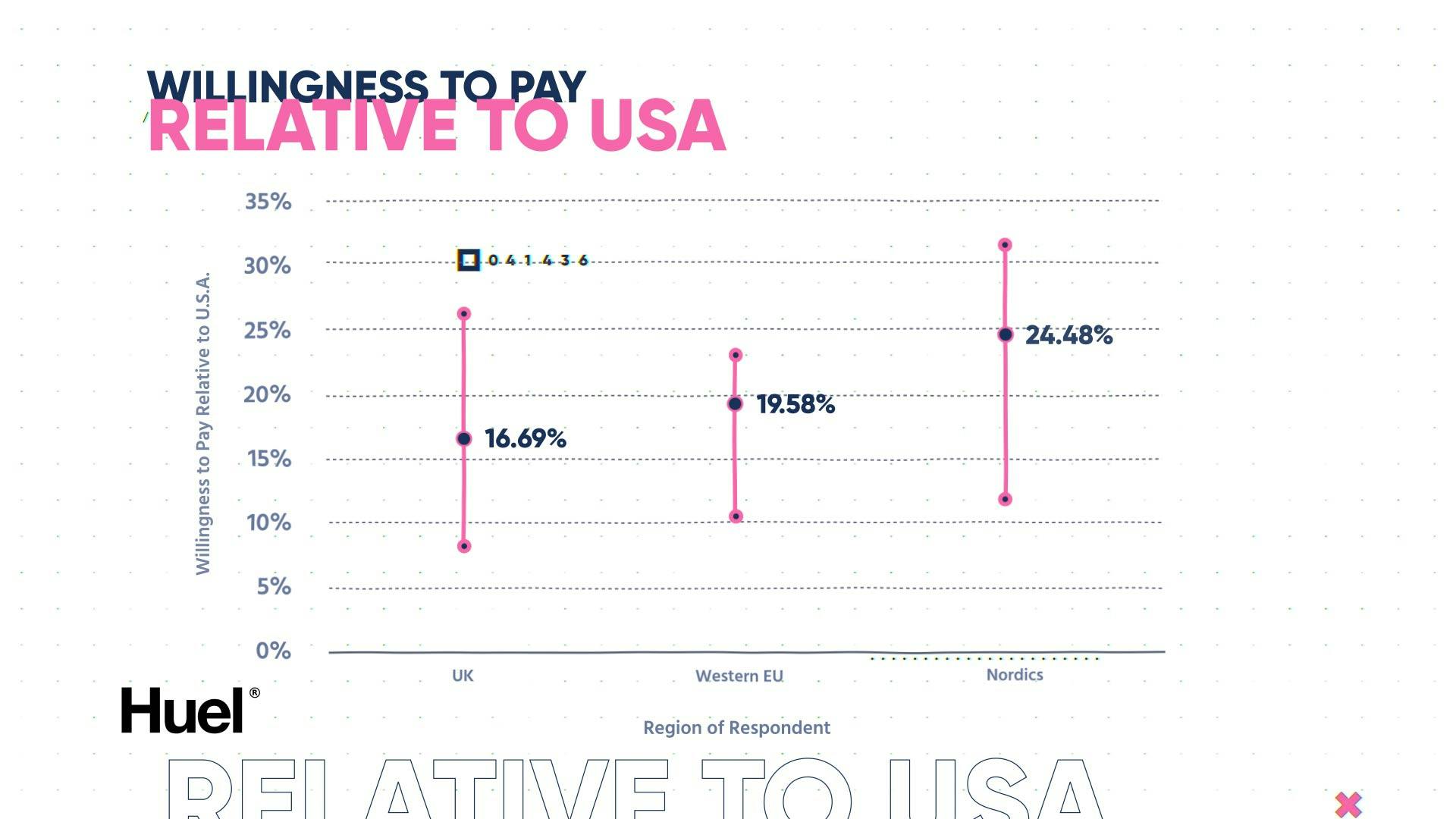 With Huel, I saw willingness-to-pay trends generally in line with what I've seen in the past. You'll see a higher willingness to pay in the UK, Western Europe, and the Nordics, of course. It's kind of like the cost of living and standard of living.