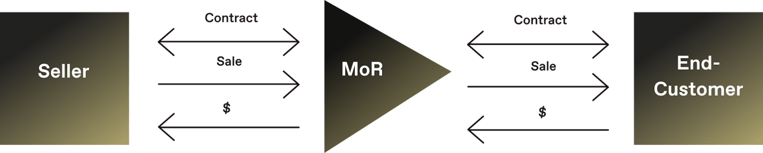Transactions are routed through the global payments infrastructure already built and maintained by the MoR. It’s then the MoR that takes on the liability for all of the payments and sales tax compliance associated with those transactions.