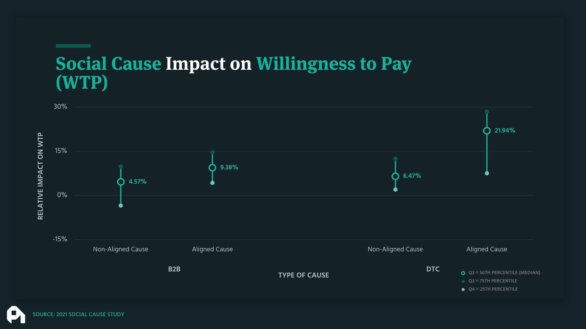 So when we looked at the data, what's really, really fascinating is that in both B2B and indeed consumer products, the cause orientation, meaning the fact that the product had a cause did boost willingness to pay roughly by 5 to 10% in B2B and then in 6 to 20% in B2C. So there was a much, much higher lift when a DTC brand had some sort of cause orientation.