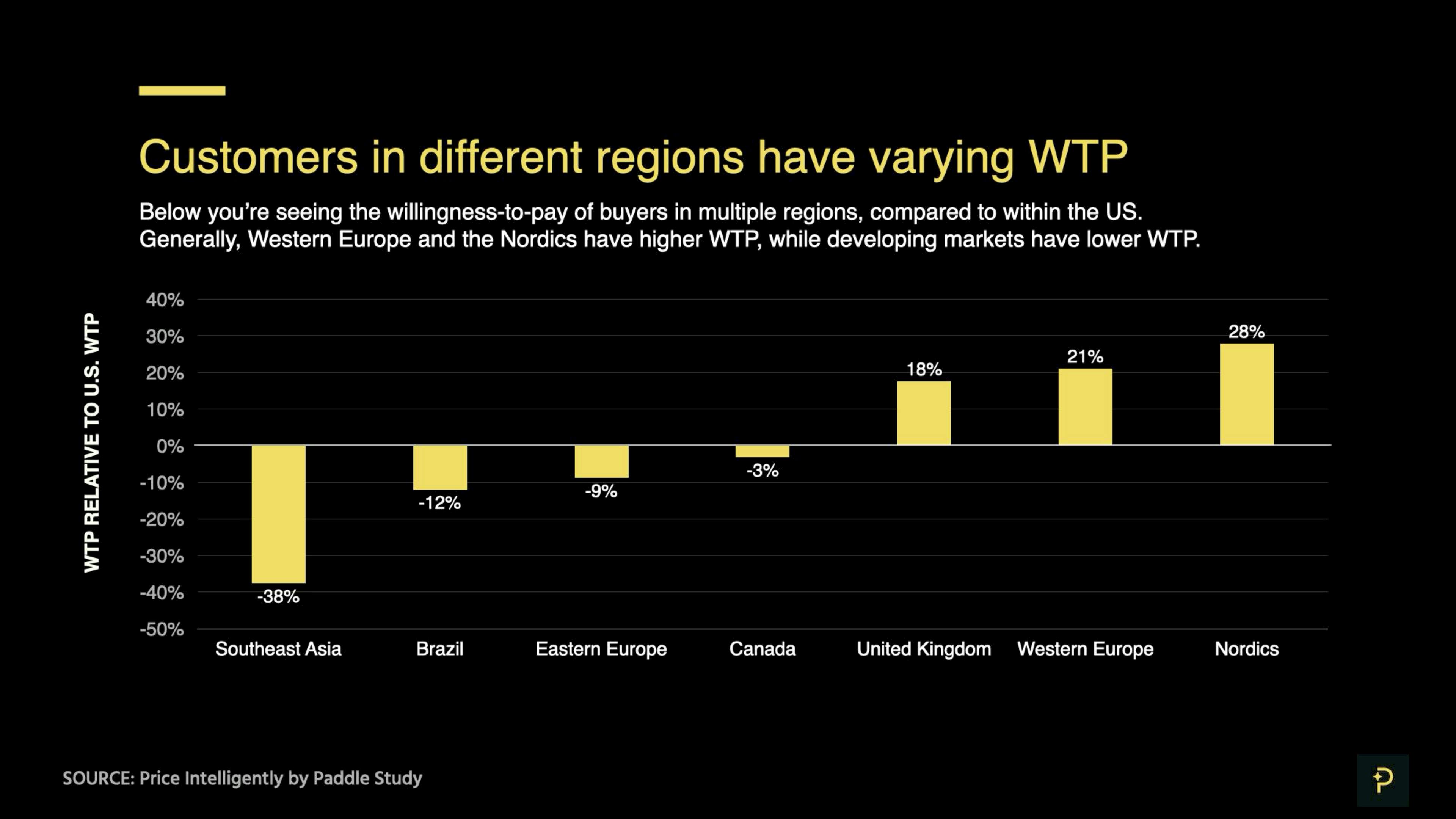 We also know that willingness to pay differs in different regions. For example, the Nordic countries have the highest willingness to pay whereas your prices will need to be lower in Southeast Asia.