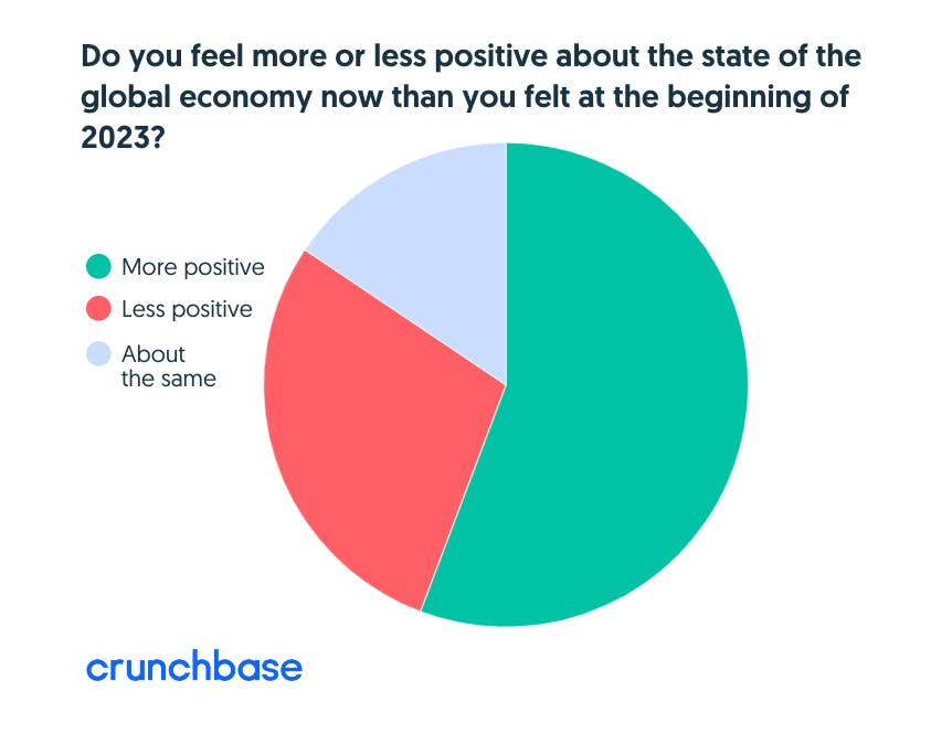 In a Crunchbase survey, 47% of respondents said they felt “Upbeat” to describe their outlook for 2024, with “Confused”, and “Gloomy” coming in at second and third place.