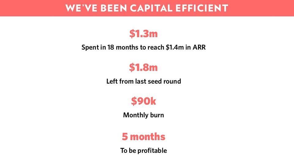 The design of the slide is clean and uncluttered. There are only a select few metrics presented, and they tell a complete picture of how Front uses their capital. No information is lost, and the metrics take the spotlight.