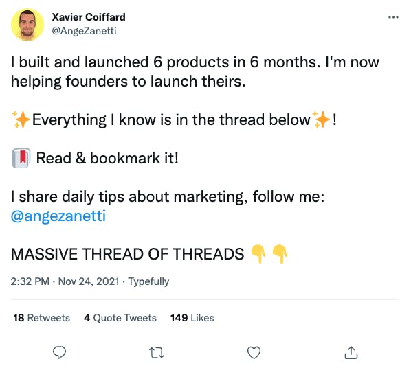 We’re all about singing your own praises when it comes to hard work and success, and you know what? There’s nothing to say you can’t do this when you’ve mastered the world of really, really helpful Twitter threads to help other founders and devs.