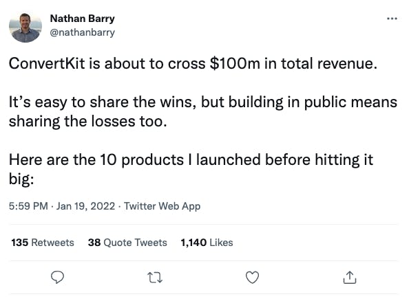 That’s why we love this honest BIP thread, where @nathanbarry goes through the products he’s launched prior to his very successful venture ConvertKit. Oh, and their revenue too (or lack of).