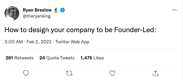 How about this example from @theryanking, the founder of Bolt? Big on Twitter threads that help and inspire a lot of people. This specific one offers eight points of advice on a newer approach to growth strategies: founder-led growth.