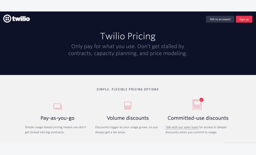 Customer engagement platform Twilio, for example, offer the option to ‘only pay for what you use’ in a contract-free plan, while app connectivity tool Zapier charge a flat rate with a limited number of ‘Zaps’, after which you can pay per ‘Zap’.