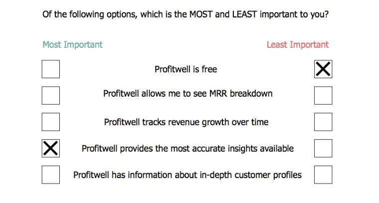 Create surveys for your customers that ask them to choose their most and least favorite feature and/or value proposition. This will allow you to see what each buyer persona cares about the most and the least when you aggregate the data.