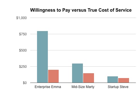 Willingness to pay is an essential component of buyer personas. Your research could reveal huge gaps between your cost to provide the service and the customer's willingness to pay. This translates to a revenue opportunity if you adjust your prices according to different buyer personas' willingness to pay.
