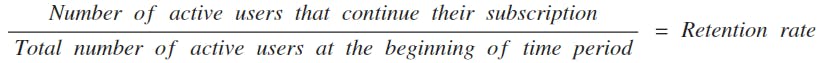 Thus, the retention rate formula is pretty straightforward: the # of active users continuing to subscribe divided by the total active users at the start of a period = retention rate.