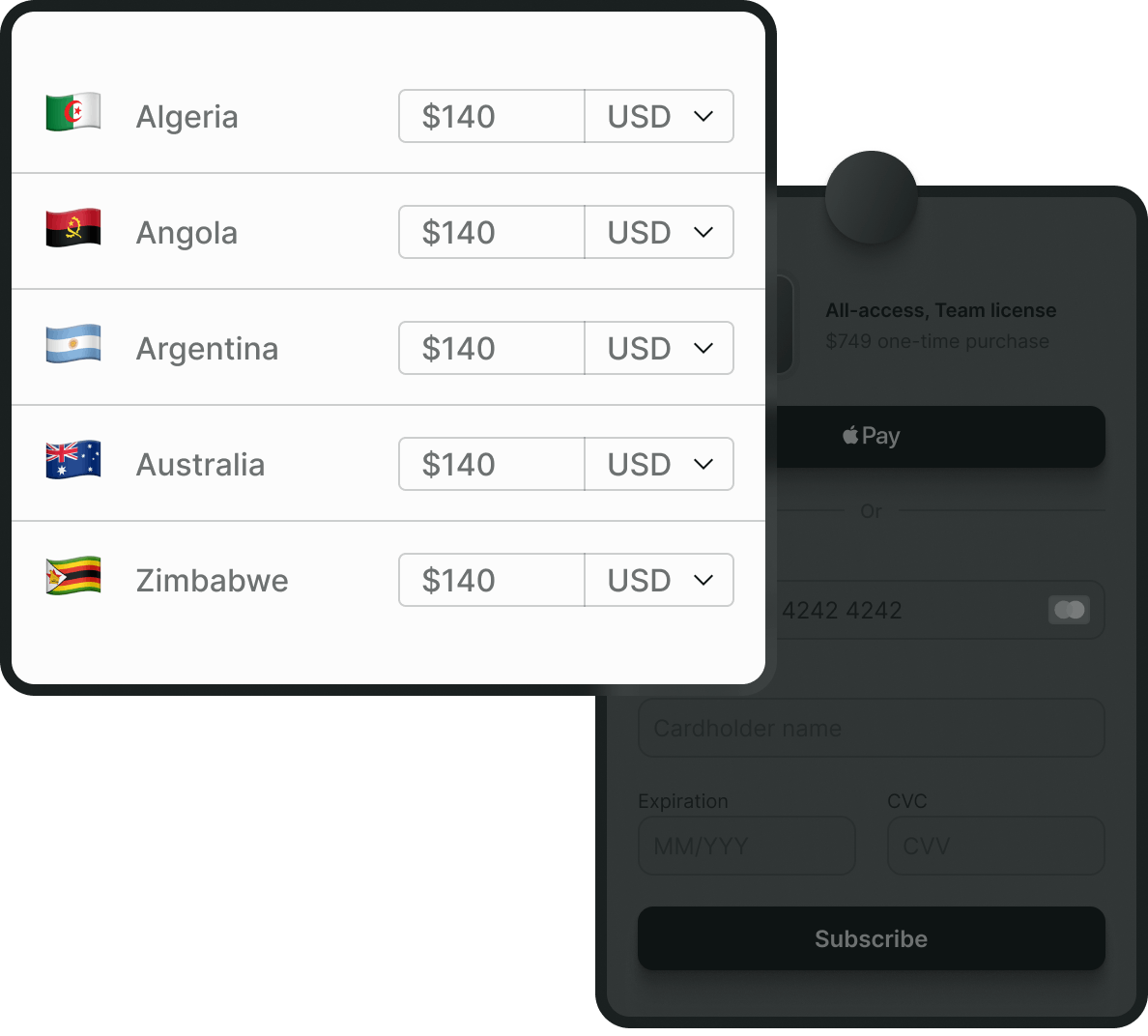 Leverage regional differences in willingness-to-pay to drive additional revenue and unlock new customers with powerful advanced payment options.