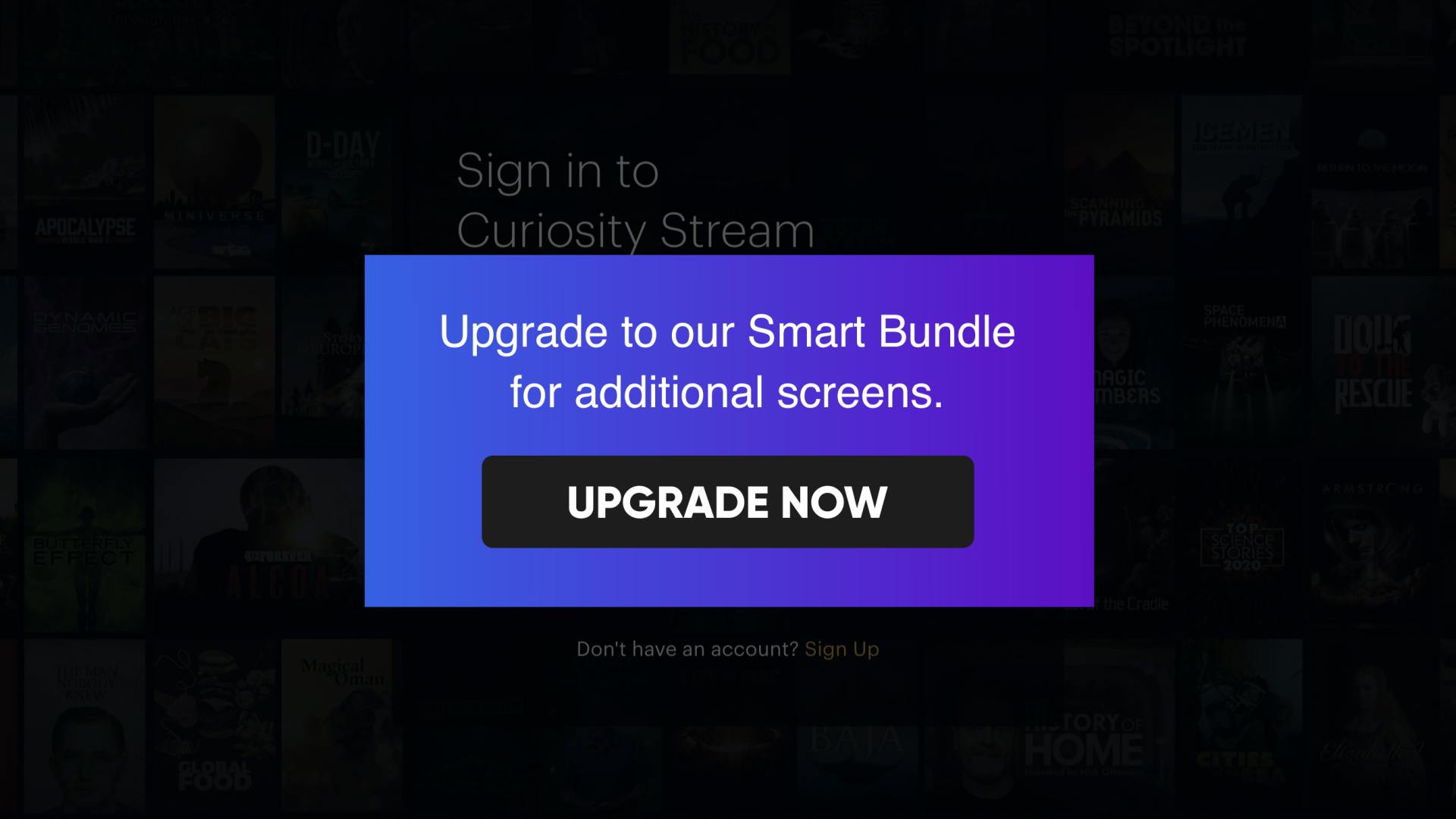 To me, Curiositystream is positioning this smart bundle as a smart bundle where you get all of this other access. This whole like watch on different screens is kind of a differentiator. But I don't know if it's exactly necessary. One thing that I would experiment with is when the standard person tries to share a password or they're trying to watch it on a couple of different screens, that's when I would prompt them to upgrade to the smart bundle where you get additional screens very similar to Netflix.