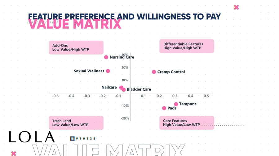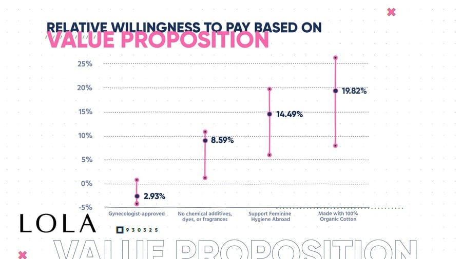 What are the things that are actually going to be a backstop to purchasing, and then what are the things that are actually going to drive value? So, we actually collected willingness-to-pay data using our pricing software where we actually talked to current LOLA customers and potential LOLA customers. We asked them about the willingness to pay on a monthly basis for tampons. We then put different value propositions on top of it and measured what the relative difference is between those numbers to see which positioning and which value propositions actually drove more value.