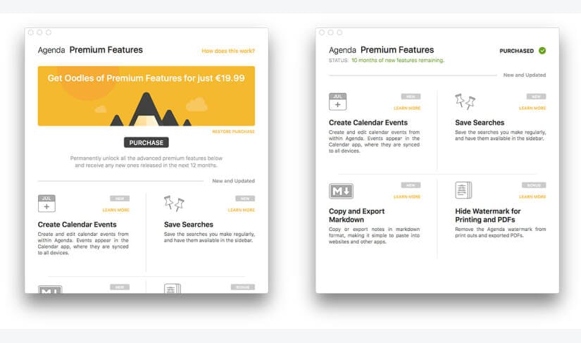 Note-taking app Agenda uses this model, promising a free product without time limits that can be tailor-made to your requirements with the addition of paid, individual premium features.