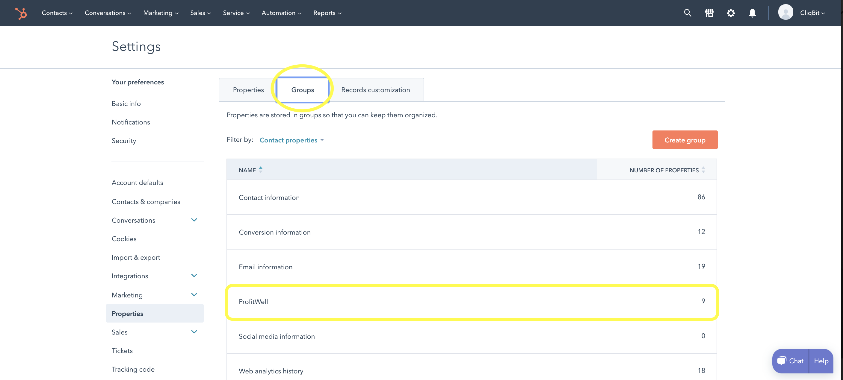 3. Go to the "Groups" tab. You'll find ProfitWell as a group below.