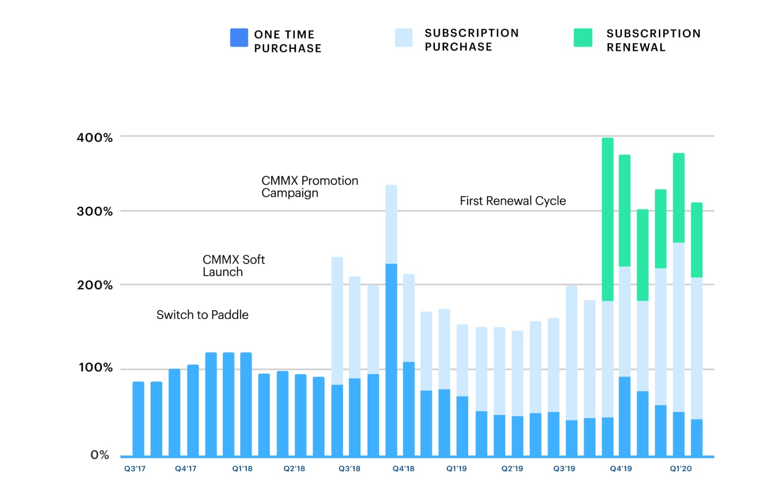 This was despite the 15% drop in conversions that occurred post-launch, something companies often experience in the early days of moving to a SaaS model. This initial slowdown was more than compensated for by the 75% renewal rate of customers after the first year.