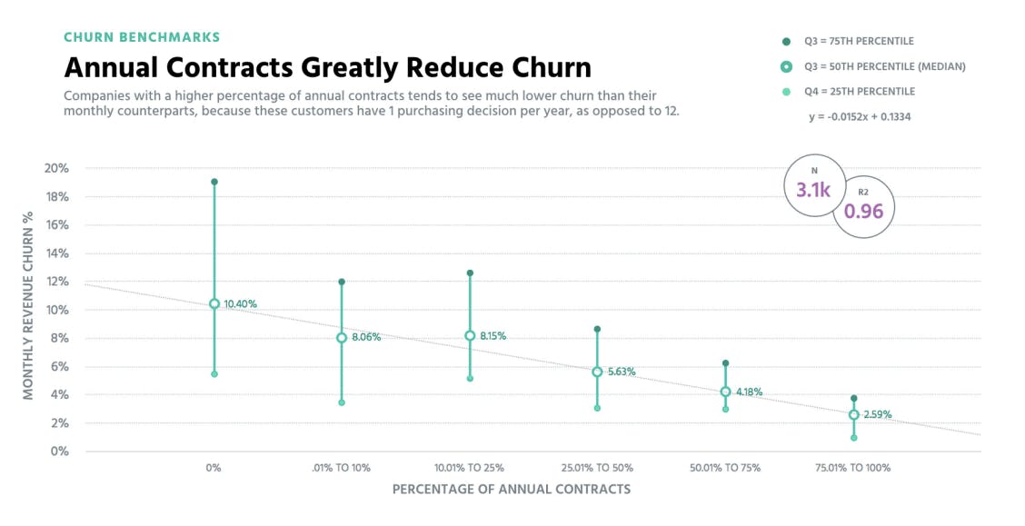 Annual contracts also have a direct impact on overall churn rates in the companies we surveyed.