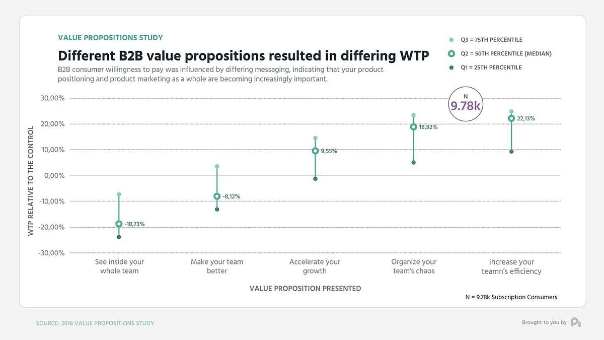 In B2B value propositions can swing willingness to pay ±20%, in DTC it's ±15%