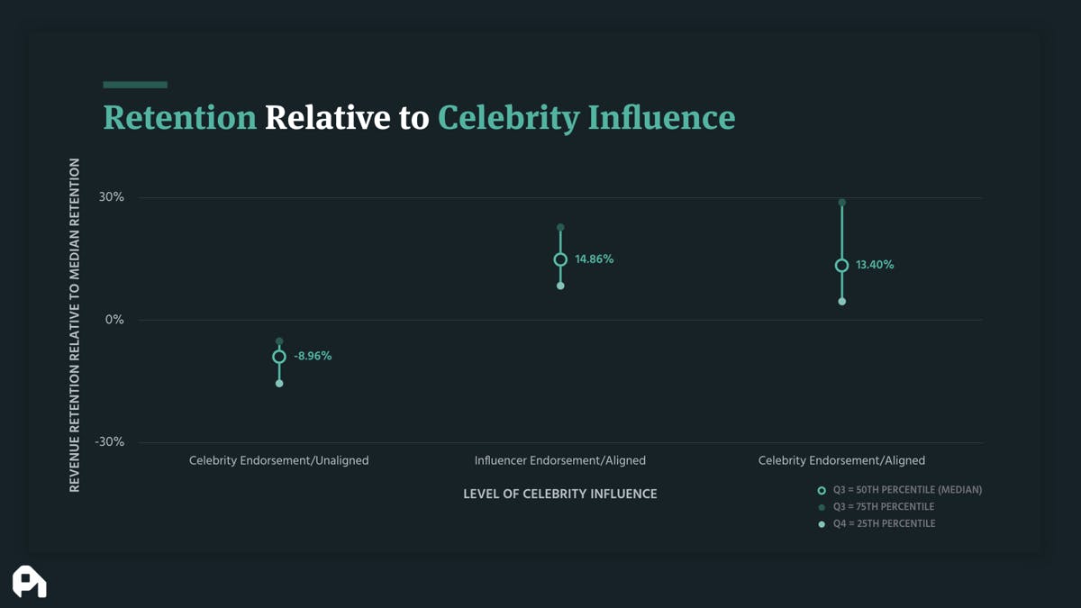 For Lindsay Lohan endorsing profit, well, their retention engagement would be about 10% less, whereas the influencer endorsement that's aligned, Jason Lampkin talking about all that typically had a 15% higher retention. And then celebrity endorsement that was aligned had about typically 13% higher retention. So you're looking at a world where it's always better to be aligned. But there's still some things, especially if you're in the world of DTC, that you might want to use if you're not necessarily caring too much about retention.