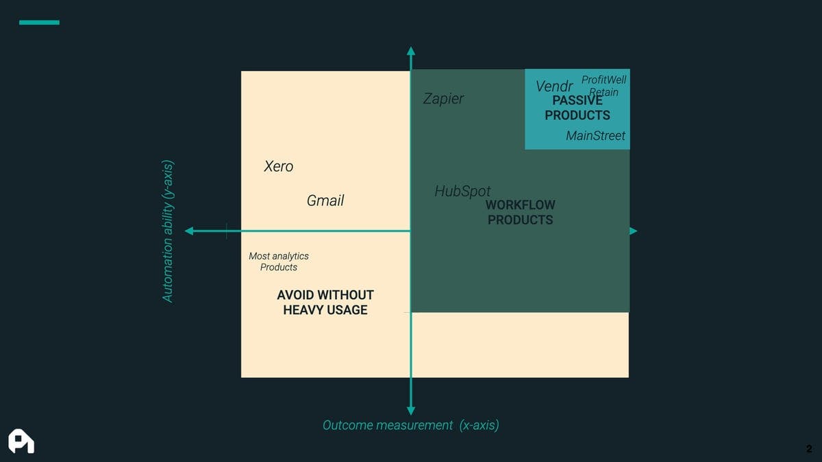 If they don't agree with the measurement, it's going to be difficult to charge along this or actually have an outcome for that passive type product. And then the second question here is how much can you truly automate? Now, in our first question around measurement, it's really important because if you're building some sort of passive product, measurement will likely be the only value driver for you because you're not training the user to use the product everyday.