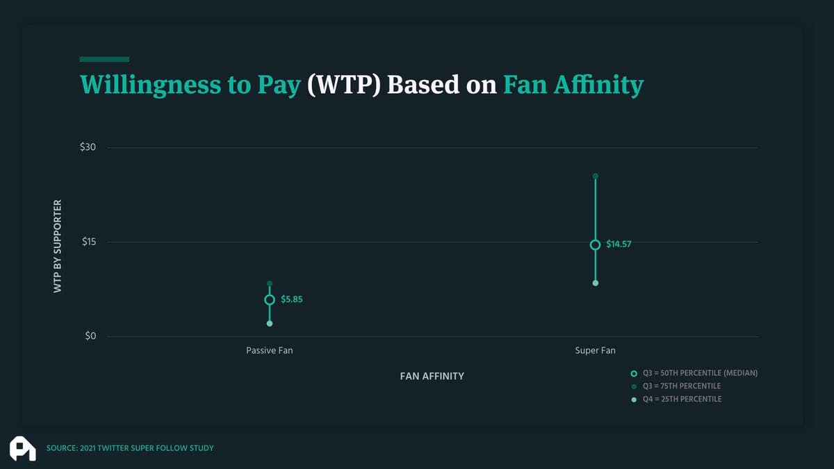 That community is so, so important in the exclusive content and it was kind of funny because when we look at some of these takeaways, the super fans just overall had much higher willingness to pay than the passive fans. And we'll talk about this more specifically in a second. Supporter badges producer credits were not a big driver of anything, neither value of the feature or willingness to pay.