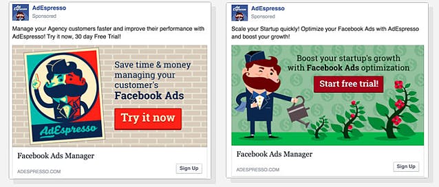 AdEspresso, a Facebook ad optimization service, segments their customers using buyer personas in their own Facebook ads: