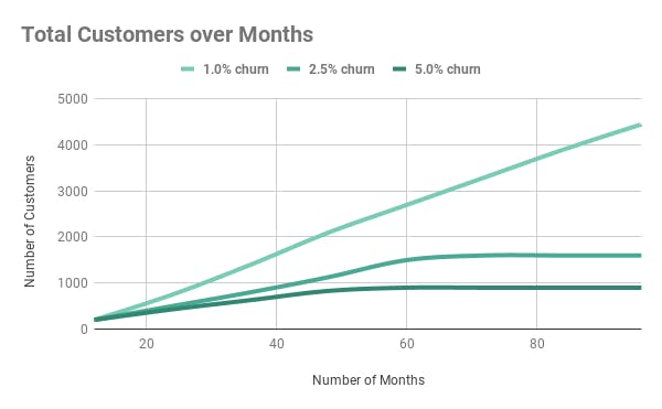 This, however, is faulty logic. Churn should always be your top KPI. If left unchecked, churn eats away at your revenue growth. Once you pass even relatively low rates of churn, adding new customers won’t be enough to see stable revenue growth. You'll continually be playing catch-up due to the customers you're losing.