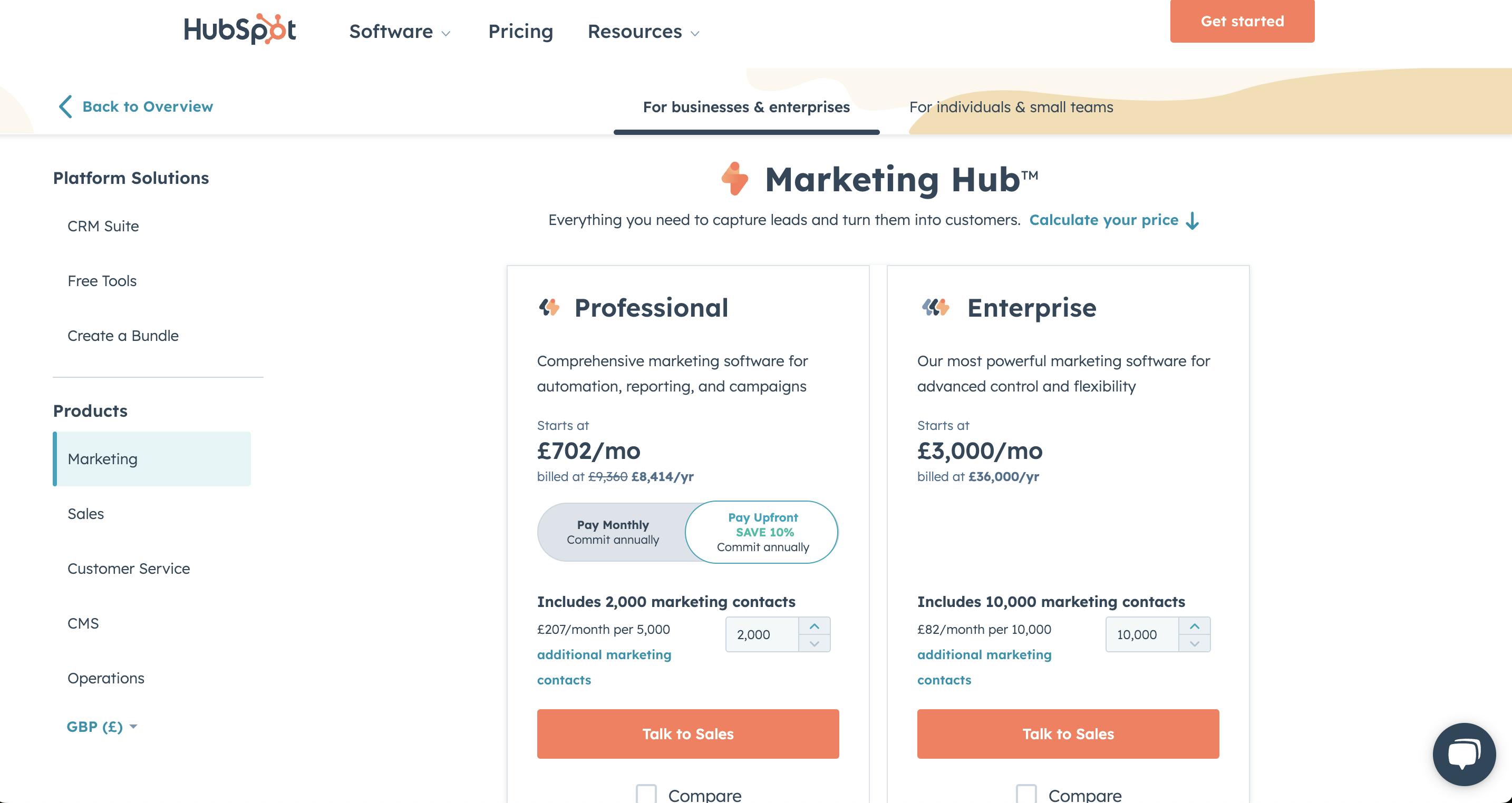 Hubspot is another brand that offers multi-structure options from purchasing a full suite to creating your own bundle.