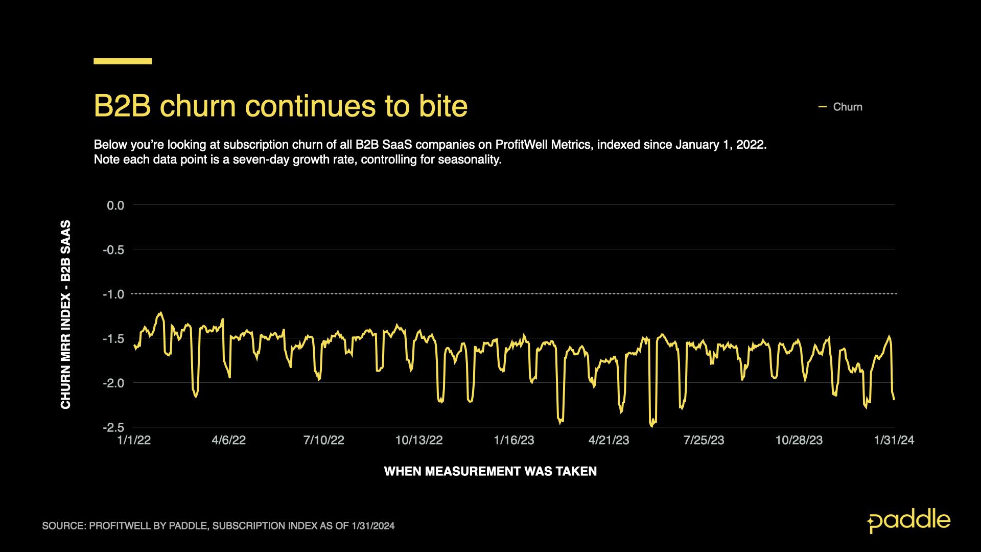 Towards the end of 2023, we noted that churn was at an all-time high and it’s not surprising as companies continue to cut spend on tools, services, and even employee count in response to slower growth.