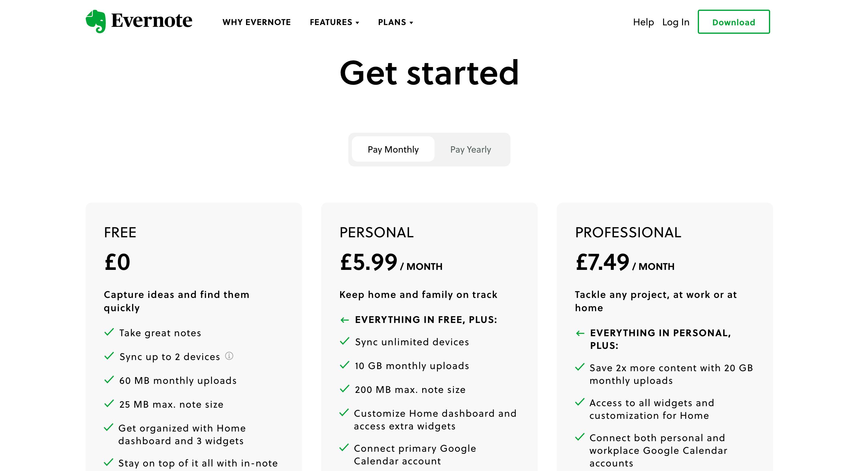 Note-taking tool Evernote offers Basic, Plus, and Premium plans, with different features unlocked at each level.