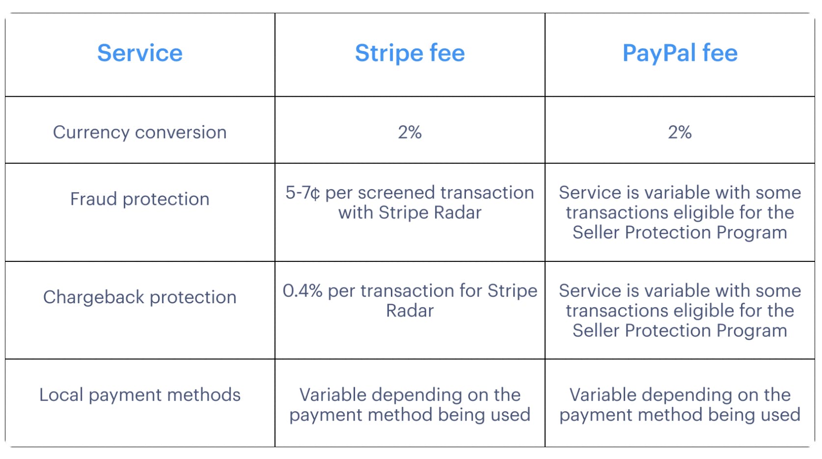 One thing to note here is that Stripe doesn’t integrate with PayPal. To use both services, you’d need to integrate with PayPal directly or an additional payment processor.