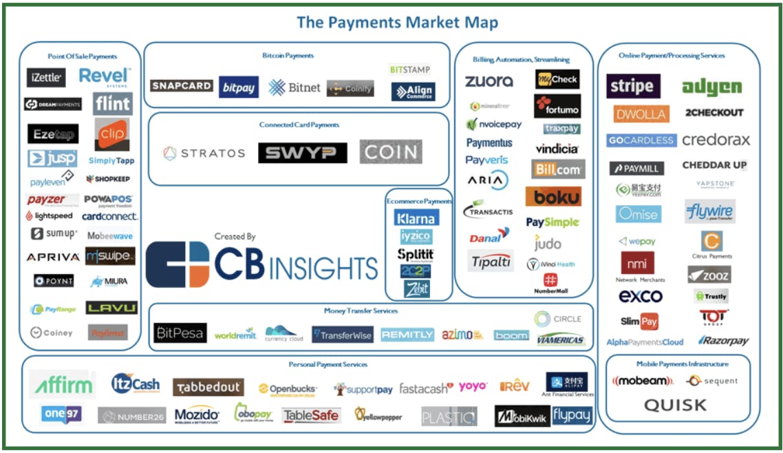Payments market map via CBInsights.