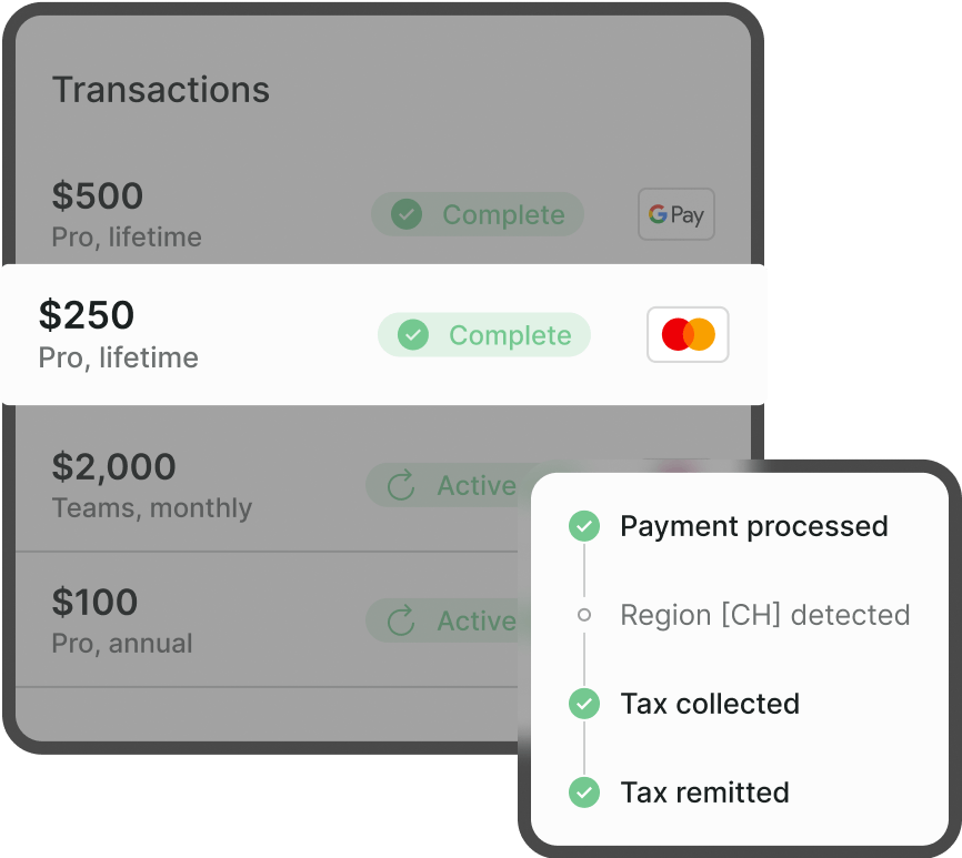 As your merchant of record, we handle all your tax and compliance on every payment, removing you from liability.