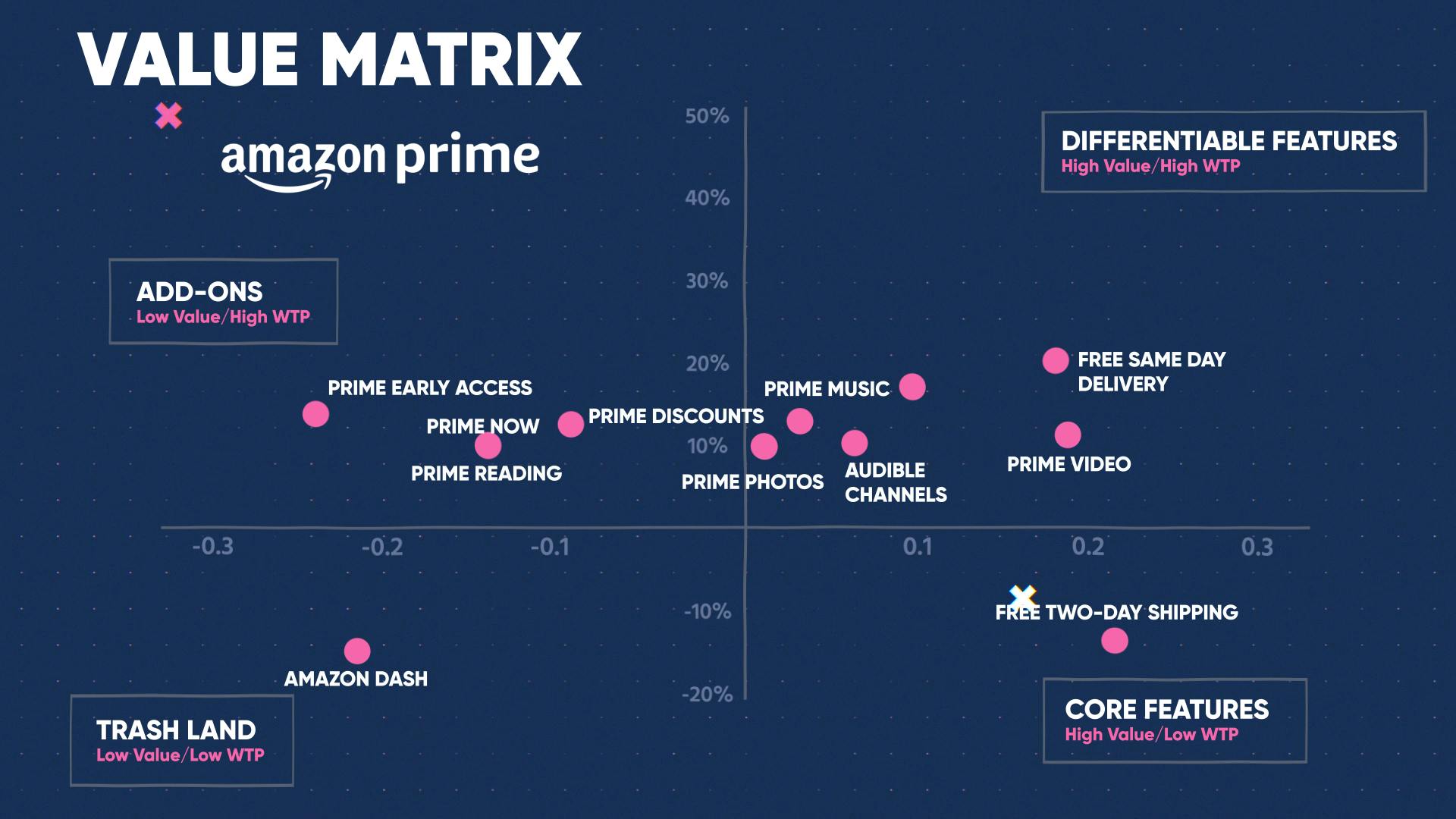I think this is something that we've talked a lot about, um, both in this episode and some other episodes, but there's this whole concept of a mission metric and it's really what are your customers needing? What's the performance they're going after? And then making sure that your membership model or just your whole pricing strategy pushes for more mission metric. And we can see this with Amazon with all of the different features that they include. And we're looking at what's called a value matrix.