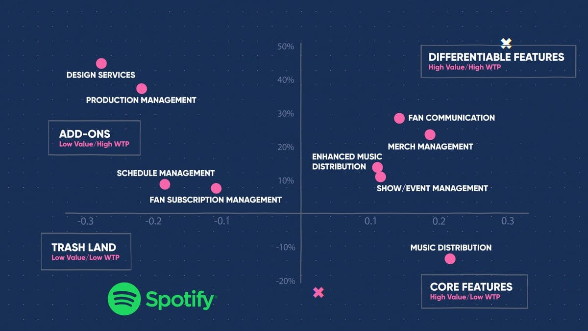 And what was really kind of fascinating here is that you have this really, really kind of historic feature set things like fan communication, show event management, merch management, that all not only have a fairly strong preference but also have a fairly high willingness to pay. And when you look at some of these other pieces like music distribution and enhanced music distribution, those have some preference, but the willingness to pay isn't that much there. Right. Because I think a lot of artists just kind of think they expect it. It is what it is at this point. Yeah. And if I'm with a label, they're gonna put a bunch of money around my release and if not, like I'm kind of on my own and I'm gonna be doing what I need to do. But all these things kind of in between I think are really, really strong things that Spotify could be doing.