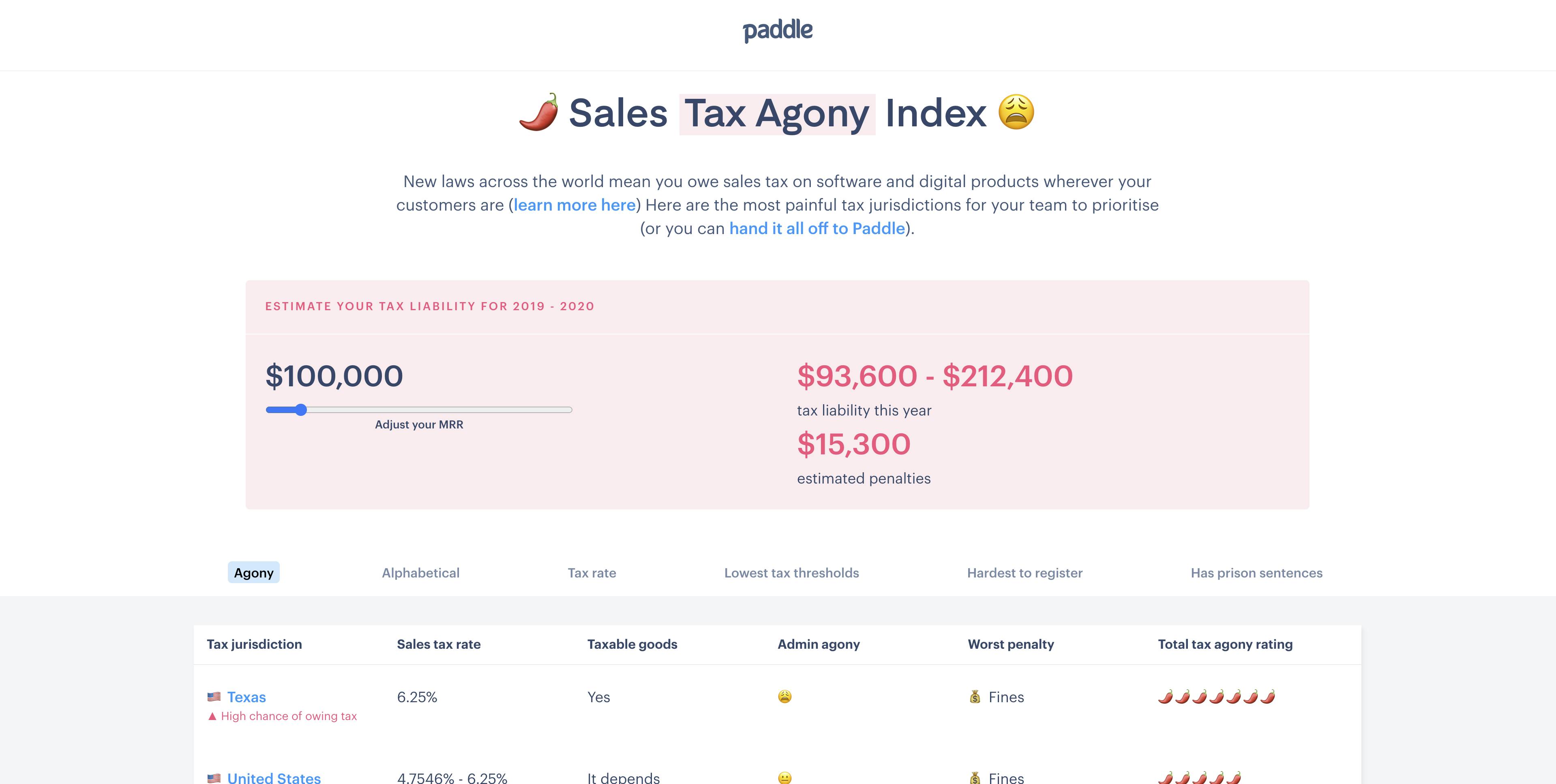 So, we asked our brilliant team of tax specialists here at Paddle for help to create an index of the most taxing of tax agonies. It’s designed to help you more easily understand your liabilities as your SaaS business grows.