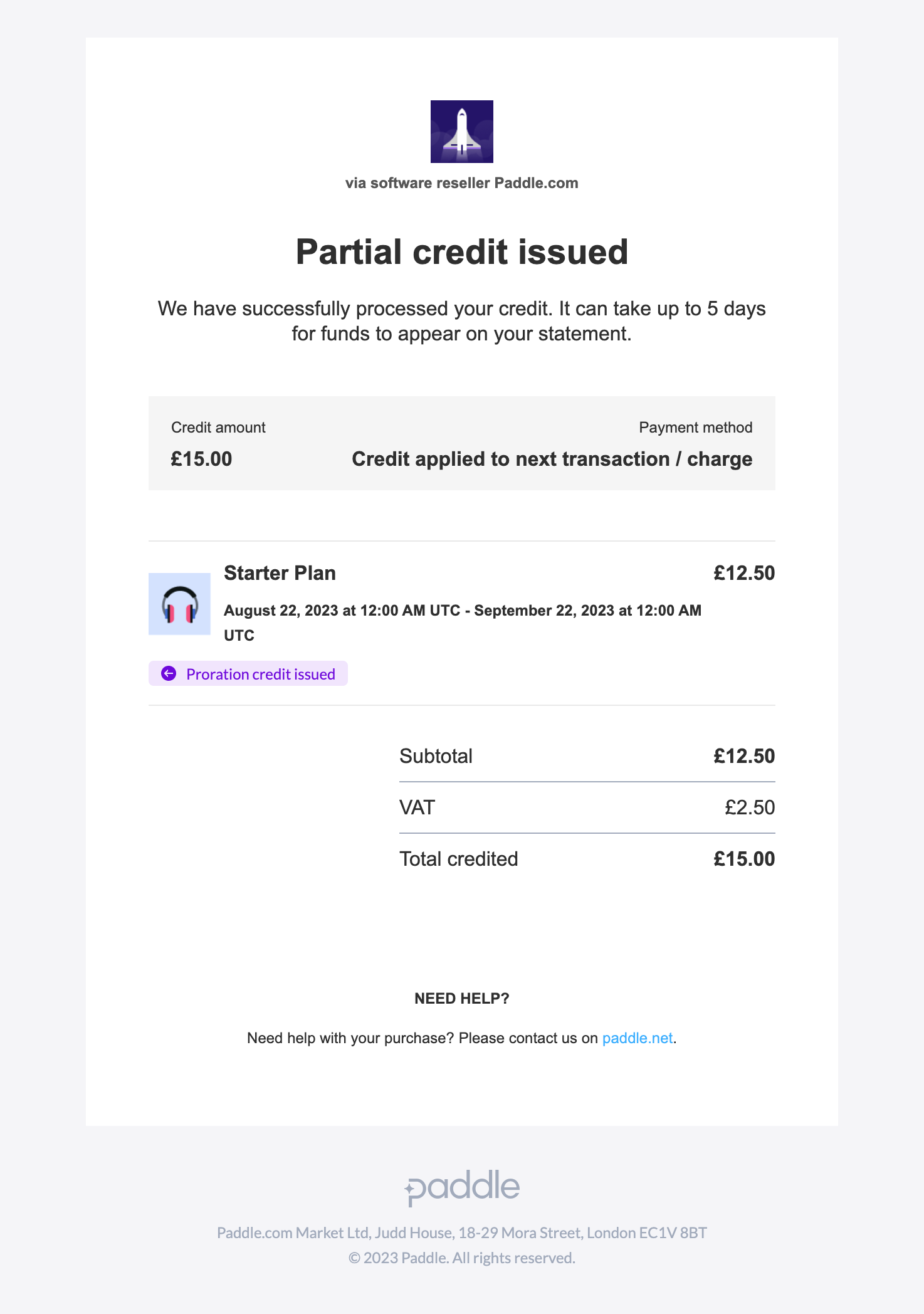 When a credit has been issued against the invoice, an email is sent with the updated invoice.
