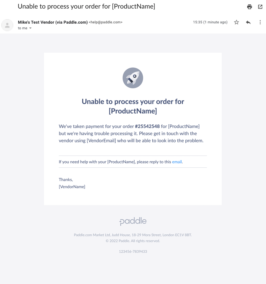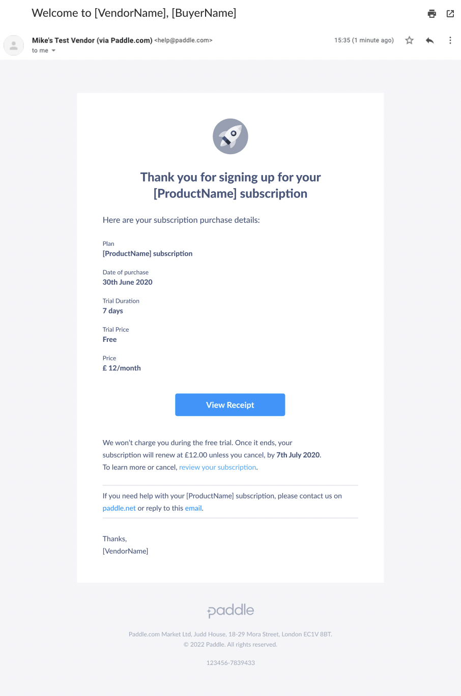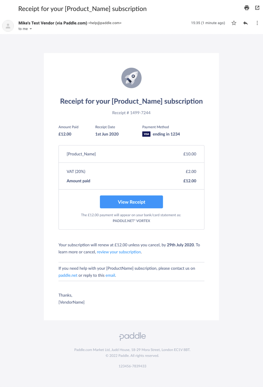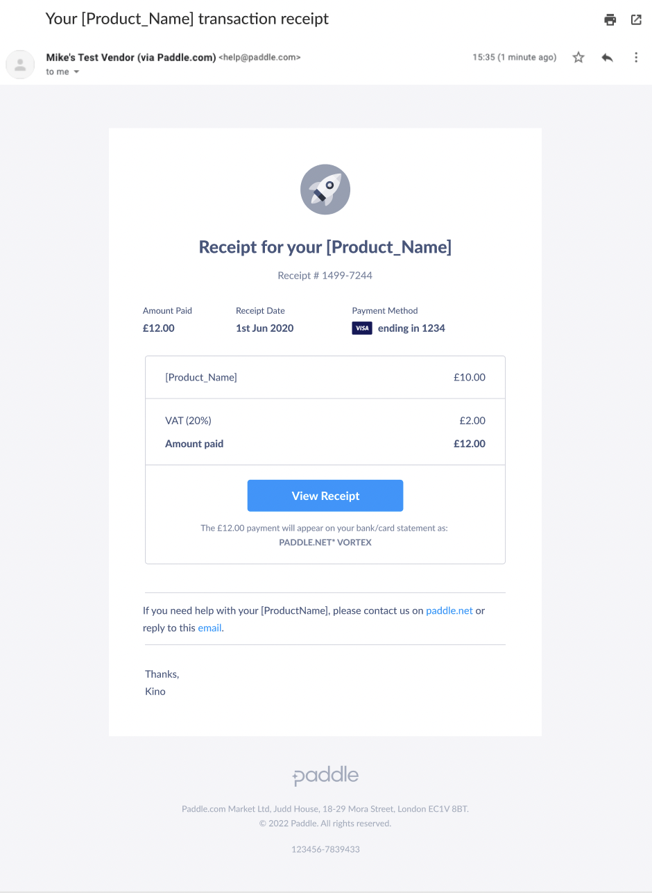 By default, Paddle will email customers with their order receipts along with any instructions you have provided for products. The best way to preview the emails your customers will receive is to test your checkout integration using the full purchase & refund method.