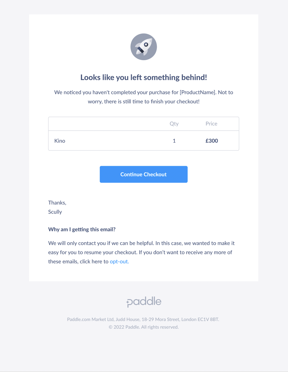Using Paddle you’re able to switch on checkout recovery - a feature whereby we attempt to recover any incomplete checkouts for your products. You’re able to switch checkout recovery on/off on the Recover Settings page of your Paddle dashboard.